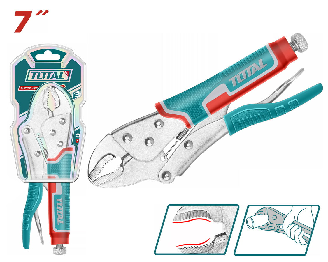 خرید انبر قفلی ۷ اینچ توتال؛ ابزار مقاوم و خوشساخت با فک قابل تنظیم و دسته ارگونومیک ضدلغزش، مناسب کارگاه، تعمیرات و مصارف خانگی با مکانیزم قفلشدن قدرتمند و دوام بالا.