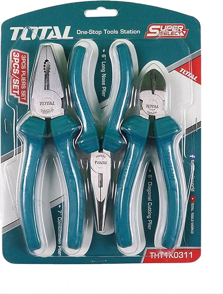 خرید ست انبردست، سیمچین و دمباریک سهتکه توتال؛ مجموعهای مقاوم مناسب تعمیرات برق، نصب و کارهای فنی، هر سه ابزار از جنس کروم وانادیوم با دسته ارگونومیک ضدلغزش و تیغههای تیز. حمل آسان و کیفیت عالی برای کارگاه و خانه.