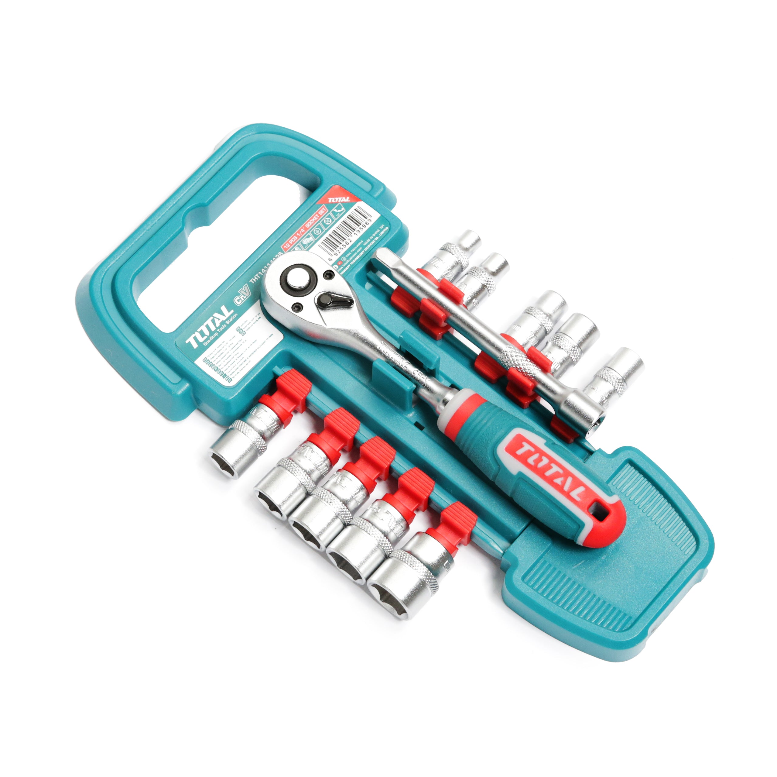 ست بکس ۱۲ تکه توتال، مجموعهای همهکاره با بکسهای سایز مختلف و دسته جغجغهای، عالی برای تعمیرات دقیق، مکانیکی و مصارف خانگی. کیفیت بالا و مقاومت عالی، همیشه همراه شما!